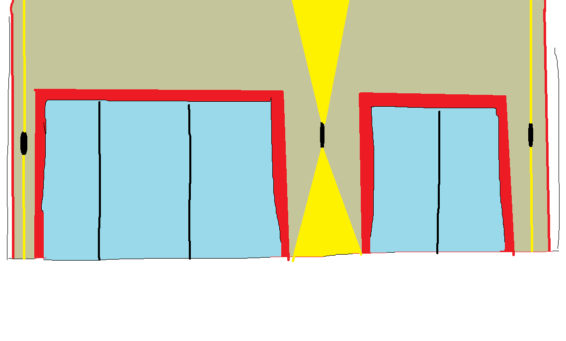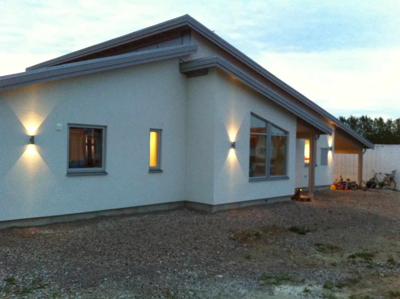 Så här har jag och kunden tänkt oss ungefär. På sidorna av fönstrena är det så smalt så något bredstrålande skulle antagligen bara se konstigt ut. Därav smalstrålande på sidorna.