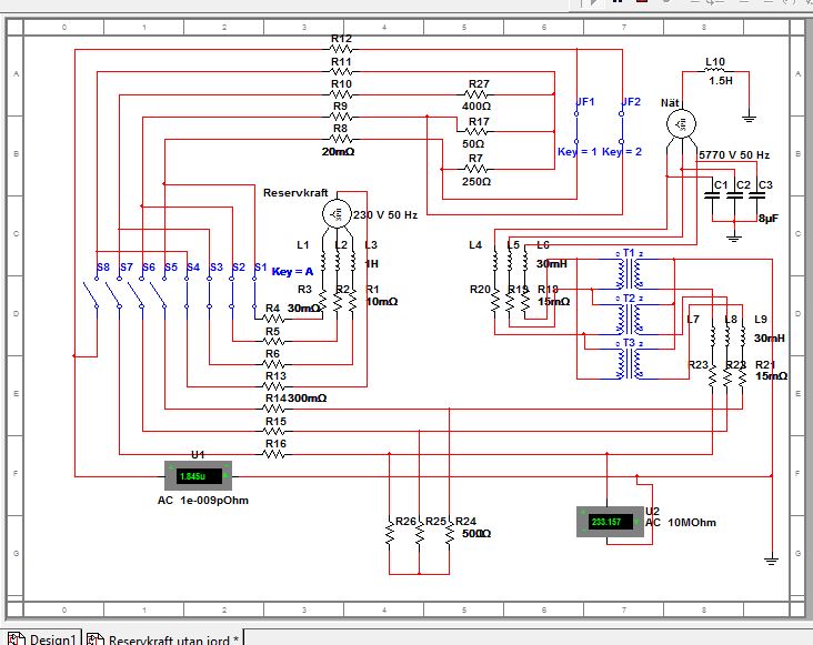 Michell Andersson skrev: Här är en skärmdump på kretsen. Behövs kapacitans och induktans och dylikt för att det ska bli realistiskt? Vilka värden ska man ha i så fall? Kom gärna med idéer och synpunkter. Detta är bara ett första utkast så jag är inte riktigt säker på hur det ska se ut.