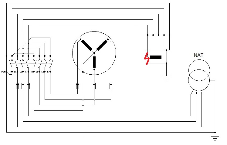 Men även vid användning av ett eget jordtag så skulle linjemästaren kunna hamna i samma sits om denne står och håller en separerad PEN-ledare och nätets jordtagsledare och det samtidigt sker ett jordfel. Denna spänning skulle uppgå till fasspänning, exklusive spänningsfallet mellan reservkraftens jordtag och neutralpunkten i generatorn (även spänningsfallet i ledningarna givetvis). Likaså här skyddar man linjemästare Karlsson med användandet av jordfelsbrytare.Bo Siltberg skrev: Slutligen är en JFB väldigt bra, men skulle linjemästarn lösa en JFB, vilket inte är så angenämt, så får man nog räkna med ett besök...