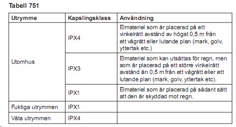 Att elmateriel har en viss kapslingsklass innebär inte att den har ett skydd mot högtrycksbesprutning. Det är därför nödvändigt att vid behov vidta åtgärder för att skydda materielen mot sådan besprutning.