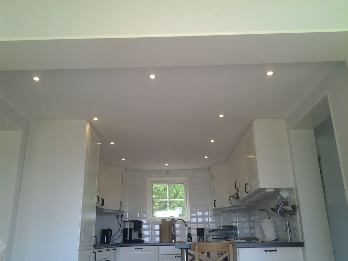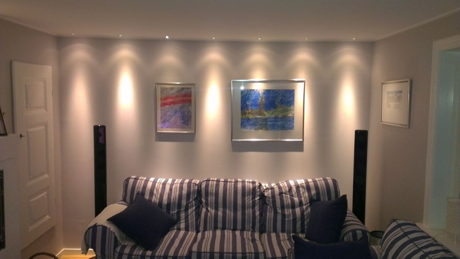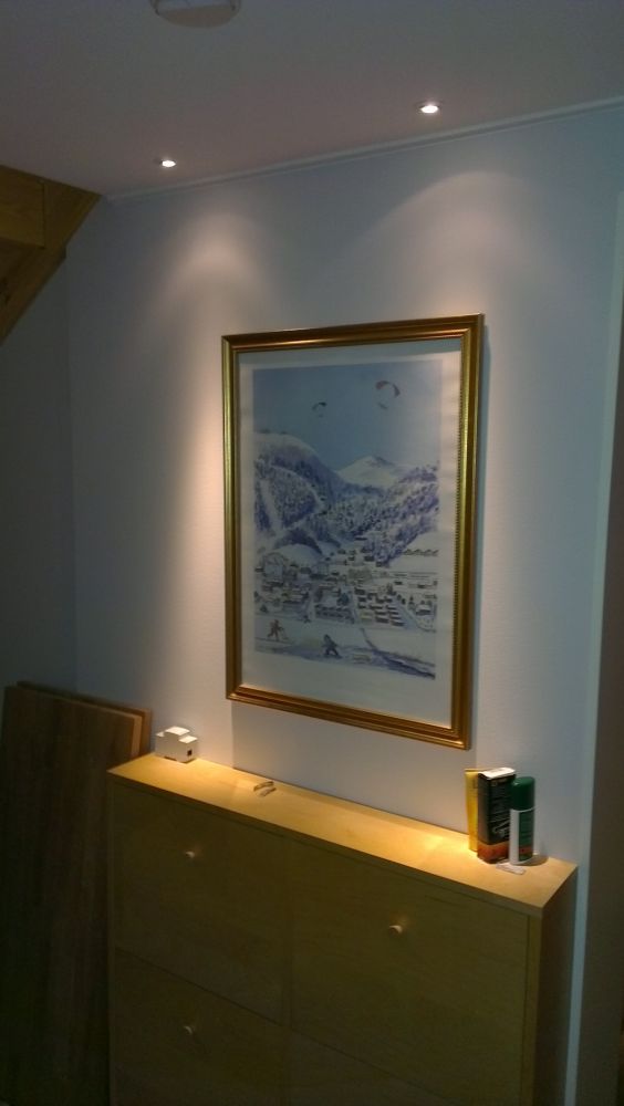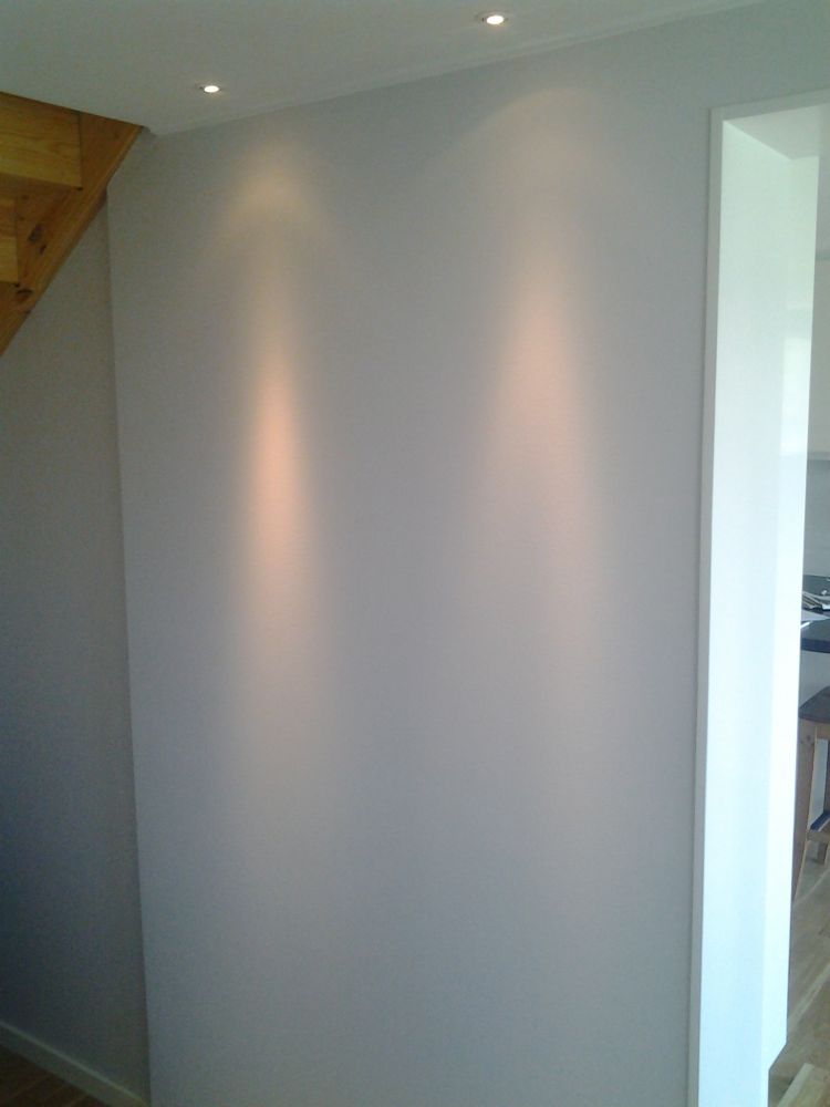 Tack så mycket! Jag blev faktiskt jäkligt nöjd! Kunden har vinklat spottarna som ger släpljus på den långa väggen själv så det lyser lite för mycket som en punkt på väggen, men..