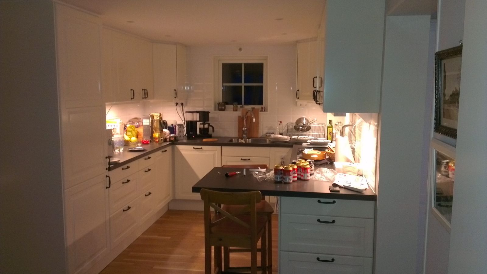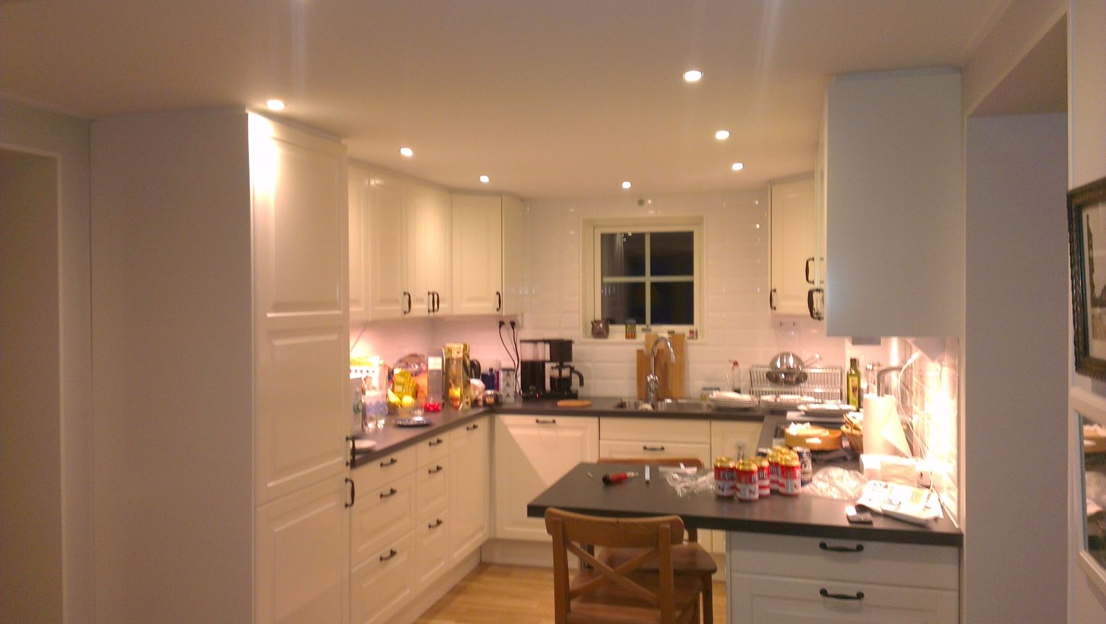 Har varit på taklagsfest på stället precis och tagit några fler bilder nu när det var mörkare. Som alltid när man fotar belysning så ser det mycket bättre ut i verkligheten, men detta är ett litet smakprov på hur det ser ut i alla fall.
