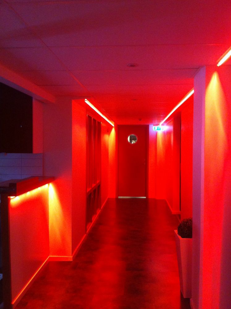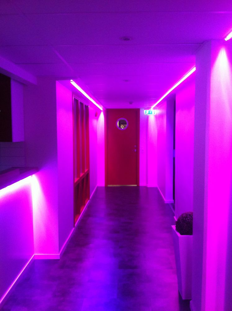 I övrigt blev det även RGB i dans/konferansrummet men i form av spottar. I bastu och över bubbelpool blev det fiberoptik och övrig allmänbelysning med LED-spottar. Ett ganska roligt belysningsjobb