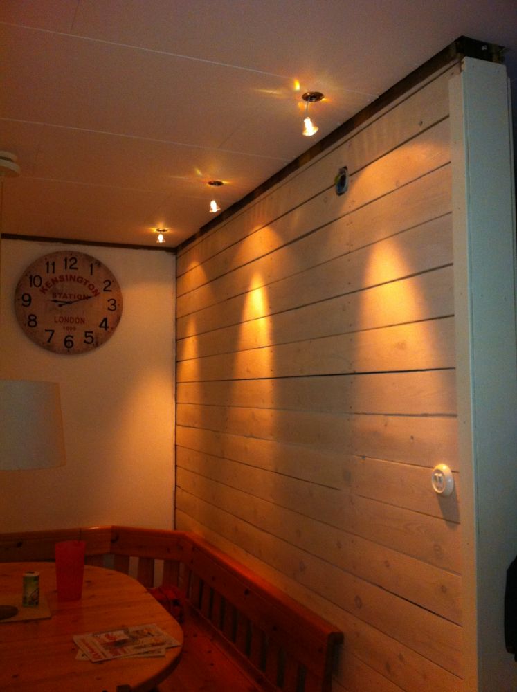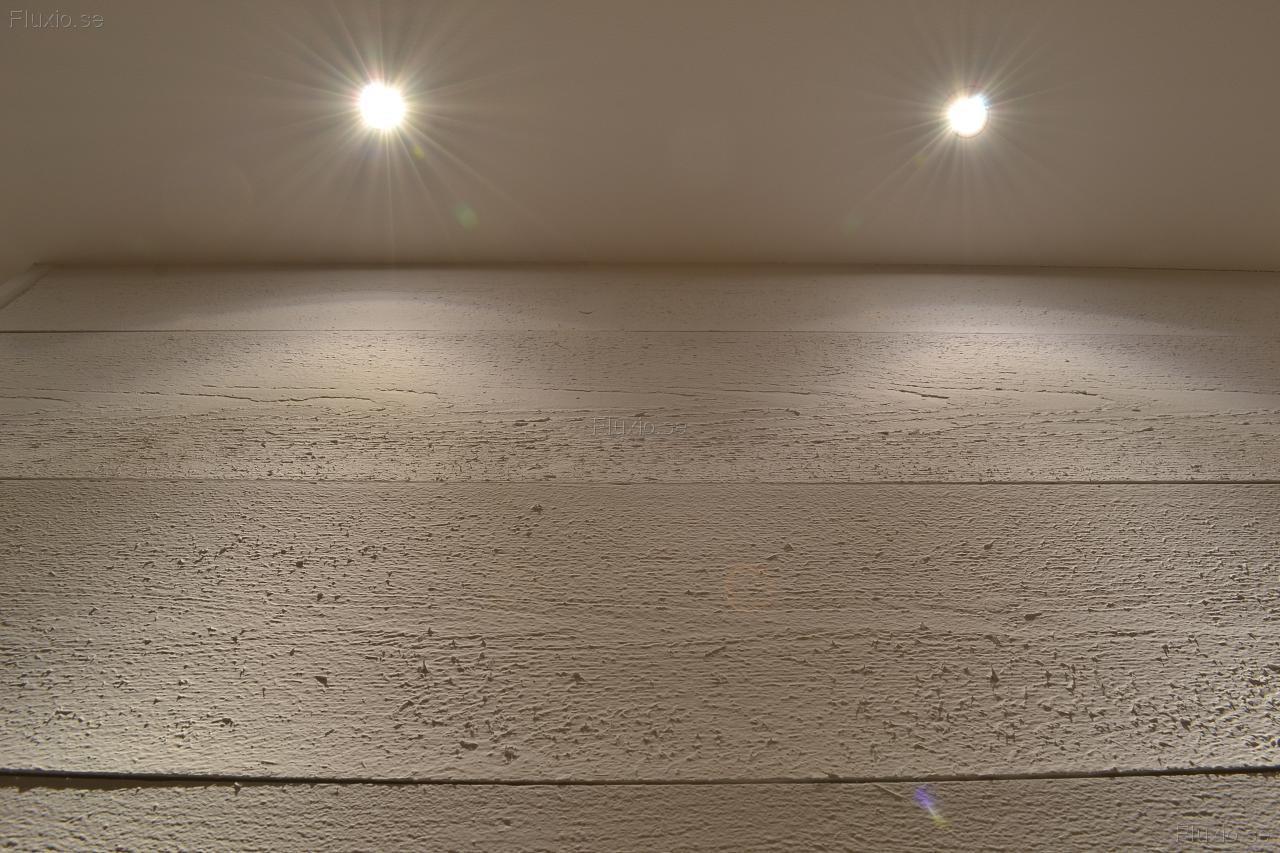 Panelväggen blev riktigt bra! Ser faktiskt bättre ut i verkligheten än på bild (om jag får säga det själv ). Ser ut som skarpare ljuskäglor på bilden.. Känns mer mjukt upplyst väggen i verkligheten. Blir läckert att göra släpljus på ojämna väggar.