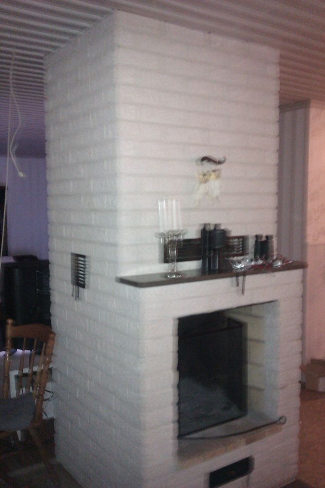Stenskivan sticker ut 25 mm runt hela, hade också tankarna på att putsa in ett par snokar men då tegelstenarna ligger om lott så tror jag att dels jobbet (att det inte är rakt upp bara) och den fräscha fogen kommer skrika ut. Övrig fog gjordes 1980. Iofs en sida av spisen går man bara förbi i nödfall där kanske man skulle ta och spåra lite!