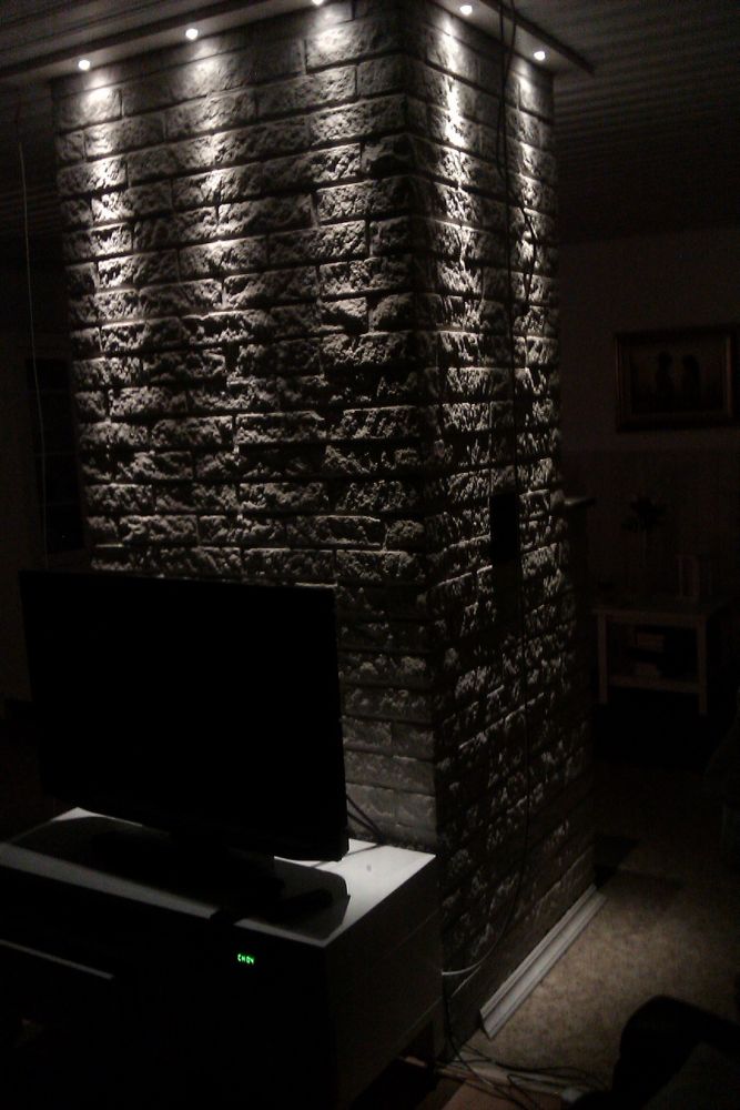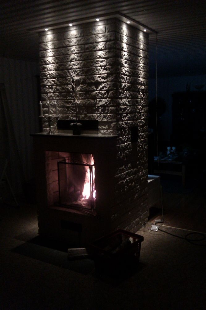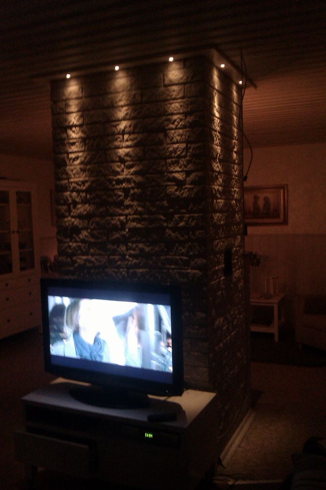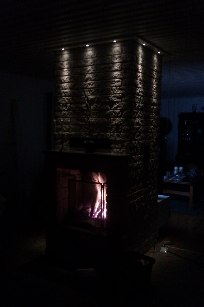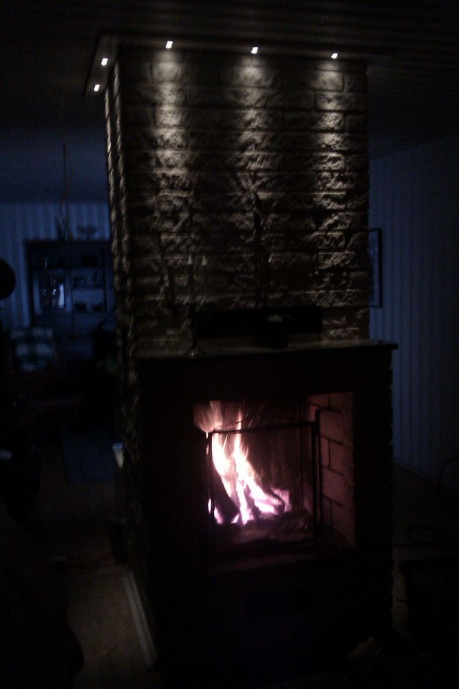 Det jag saknar är belysning av "stolparna" av spisen. Alltså till höger och vänster om brasan. Tyvärr vet jag inte hur man ska ta sig dit med kabel på ett snyggt sätt.