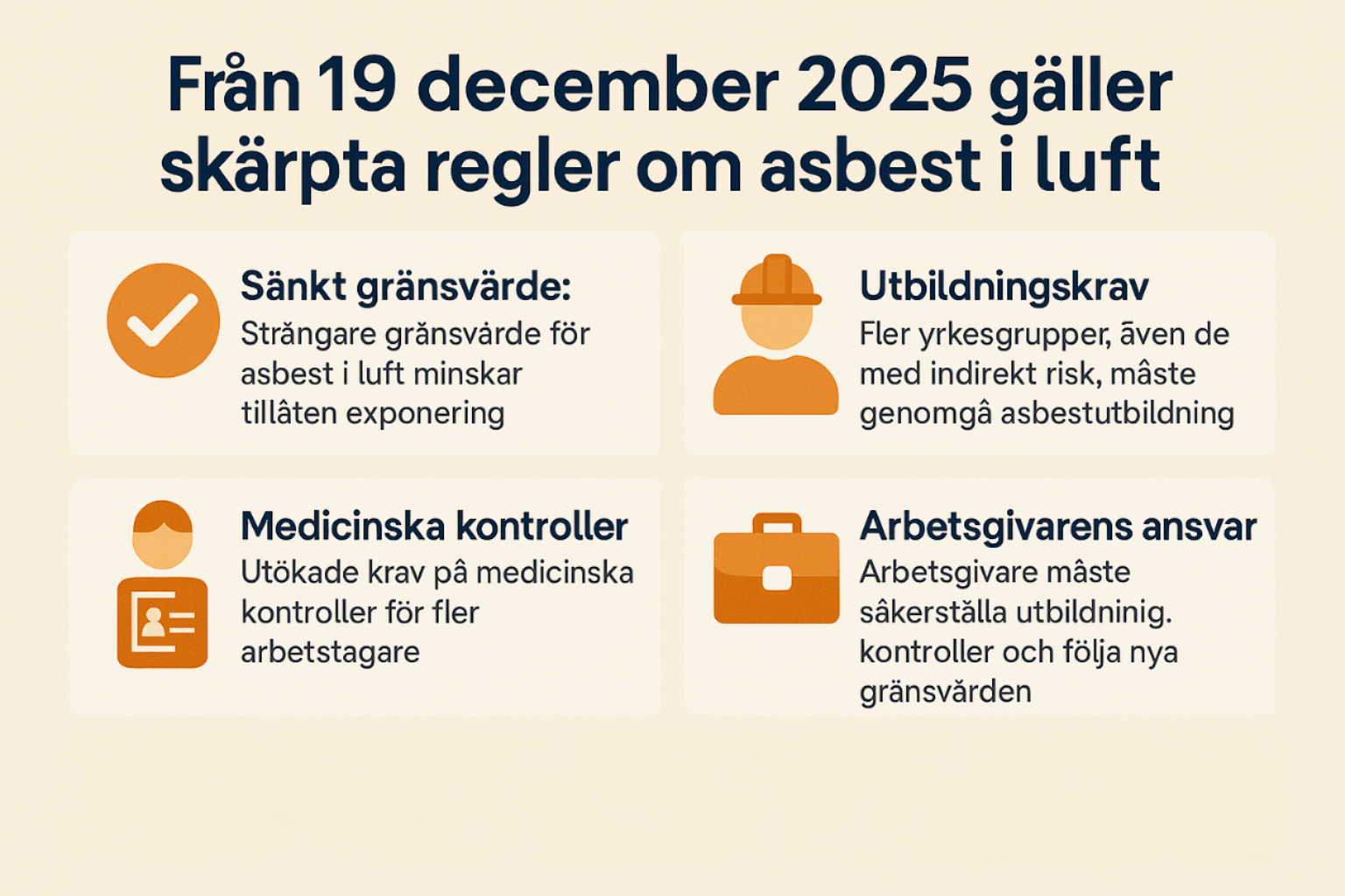 Från och med 19 december 2025 träder nya regler i kraft som påverkar alla som i sitt arbete kan komma i kontakt med asbest eller asbesthaltigt material.