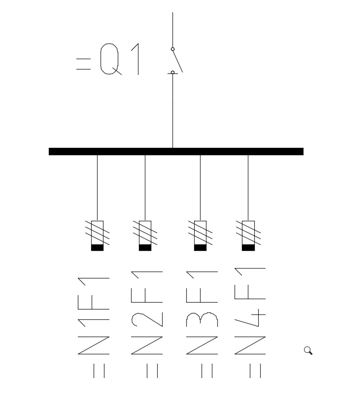 Tänk det som teknisk funktion, när brytare =Q1 manövreras påverkas funktionen av samtliga utgående grupper (fördelningar), manövreras endast säkring =N1F1 påverkas också bara funktionen i fördelningen =N1