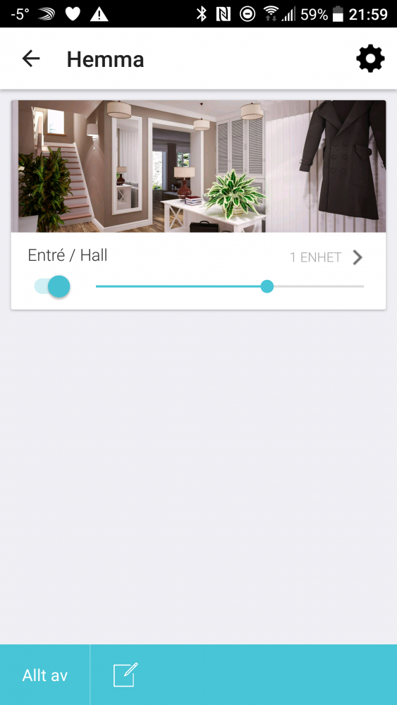 Har även testat "allt av" och "allt på"-funktionen via en kronbrytare. Då den ena knappen är för av/på/dim och den andra allt av (1 tryck) / allt på (dubbel tryck).