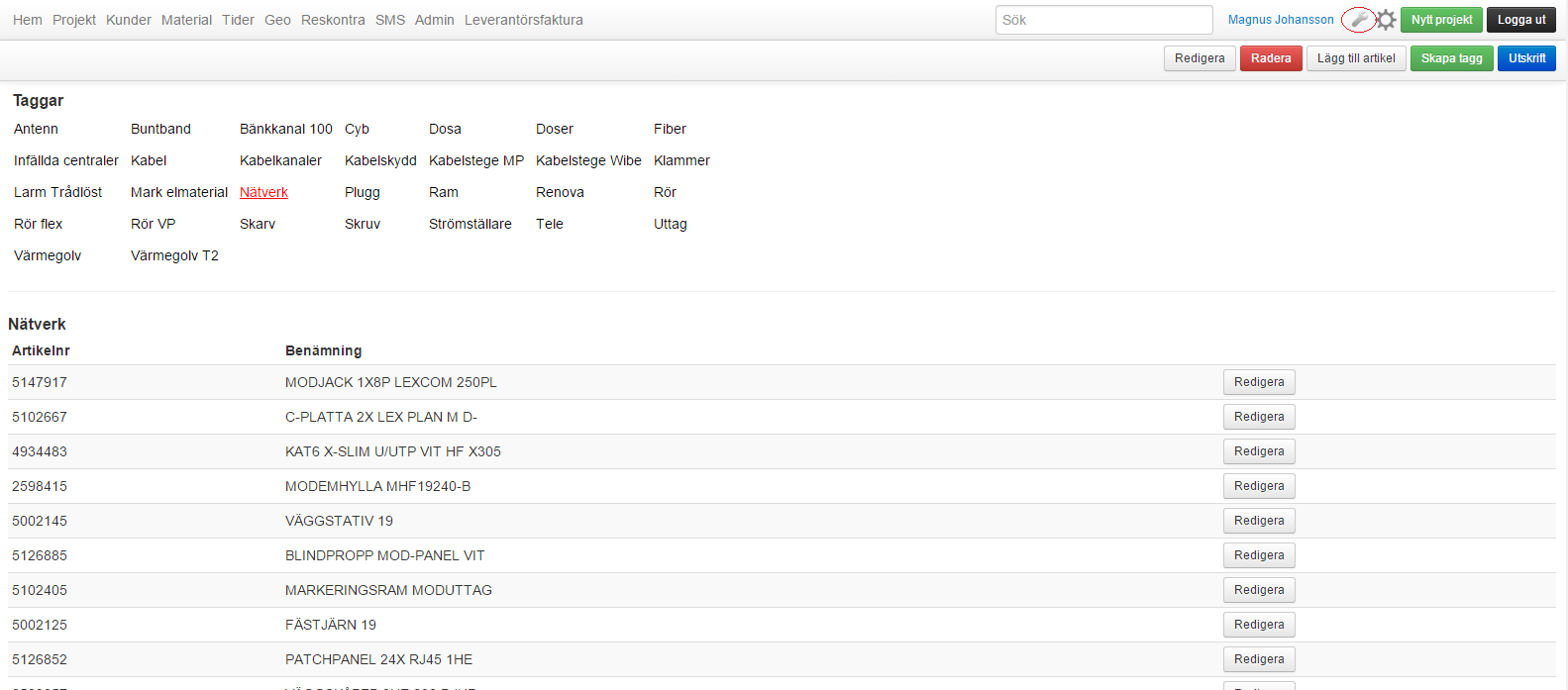 Efterhand som du beställer material passa på och gör det till favoriter som sorteras via taggar.