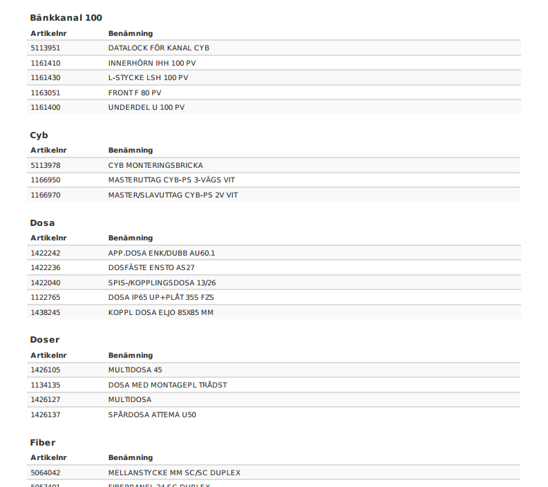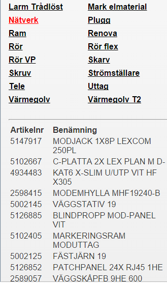 Vill montören ha ut en lista att ha i pärm/bil skriver han ut en lista direkt.