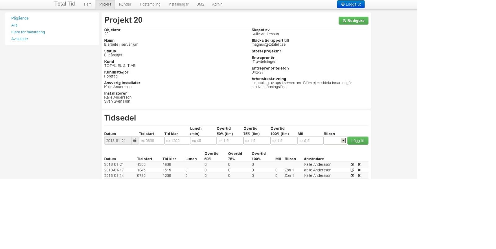 Finns det någon mindre elfirma som vill betatestare för ett webbbaserat tid och material system som jag designar och utvecklar just nu? Jag har kört med ett i flera år,men tänkte bygga ett nytt som även hanteras bra i mobil / paddor.