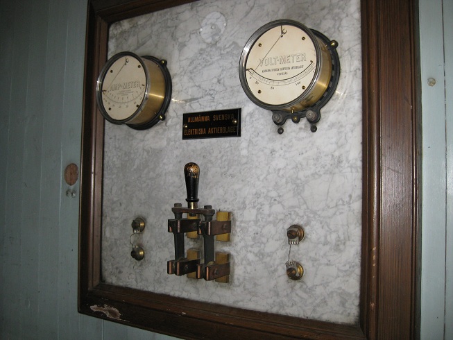 Först 1902 elektrifierades anläggningen, i början endast för belysning med båg-/ glödlampor (förmodl. 110V lik). Därefter moderniserad under hela seklet, överallt på området finns installationer från olika årtionden.