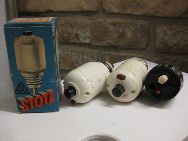 Jordfelsbrytaren kallas skyddströmbrytare "Steckwart" och var en liten apparat med ett uttag som skyddades