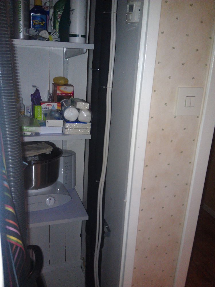 Men han hade ju hela väggen att klamra på. Men nu var han ju inte elektriker. Nä, rörisar ska nog sköta sitt och ge fan i elen. Det är förvisso i en garderob, men ändå. Man funderar ju hur avslutet på kablarna ser ut.