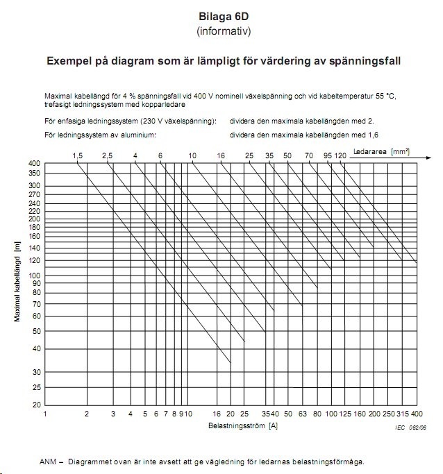 Vi måste väl ända dimensionera för 2% spänningsfall i stigare enligt våra nyare föreskrifter.
