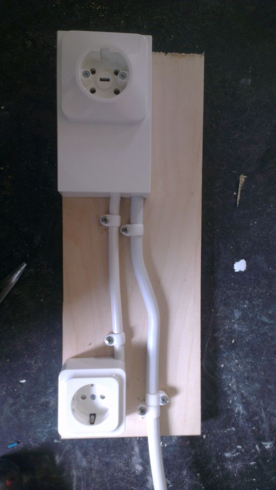 Precis, monterad på en "lös" bit plyfa med VP-slangen/kabeln tilltagen så att den räcker att "ta ut" underifrån bänkskåpet för koppling och i- och ursättning av stickproppar.
