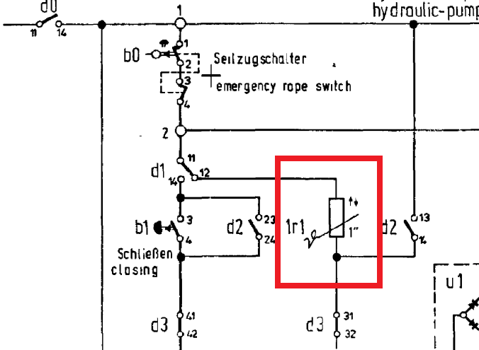Felet är i den. Den låter som ett relä som hängt upp sig och "fladdrar". Så någon form av relä sitter det i den. Inte ett "rent" nödstoppsrelä, Eftersom den styr när pressen ska stanna vid inställt tryck med.