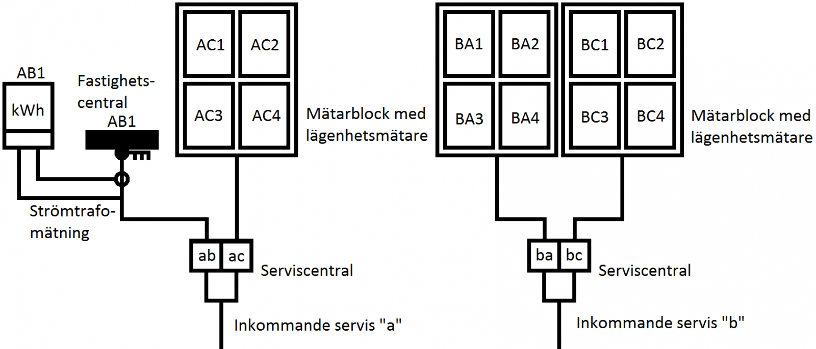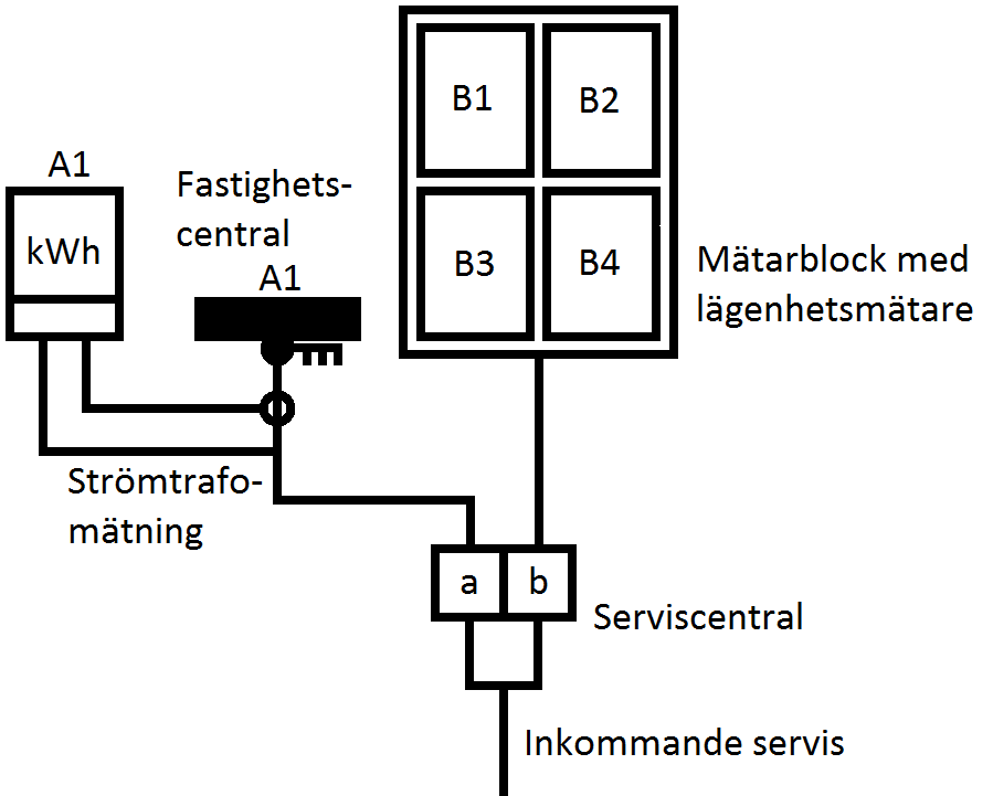 Servisen får heta A och Mätarsäkringarna och centralerna i lokalerna A1-A31. A31 är fastighetsabonnemanget.