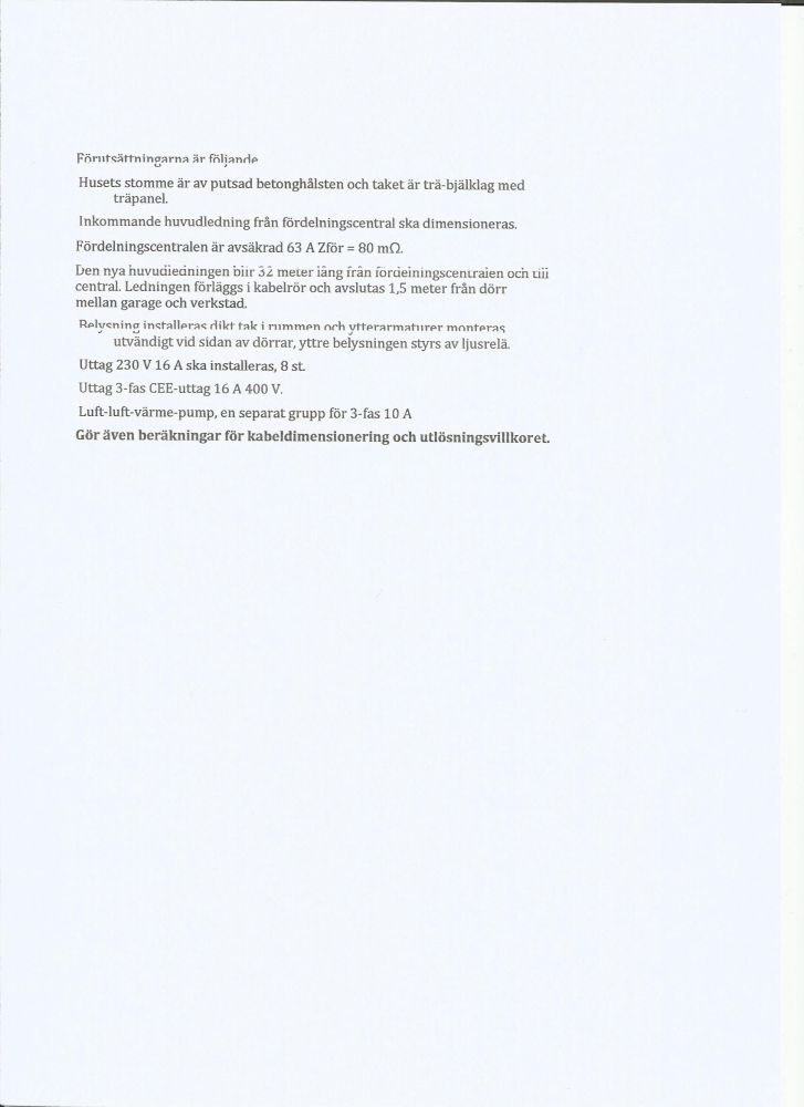 1. Uppskatta förväntad belastning. Räcker 63 A? Är det för mycket eller för lite? Bestäm säkringen i matningspunkten, om den nu inte är bestämd till 63 A.