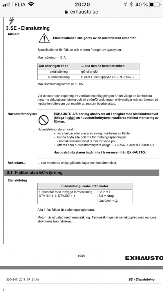Va och installerade en ny ec fläkt idag på en gammal fastighet och så fastande jag på en text i installations anvisningen där de står