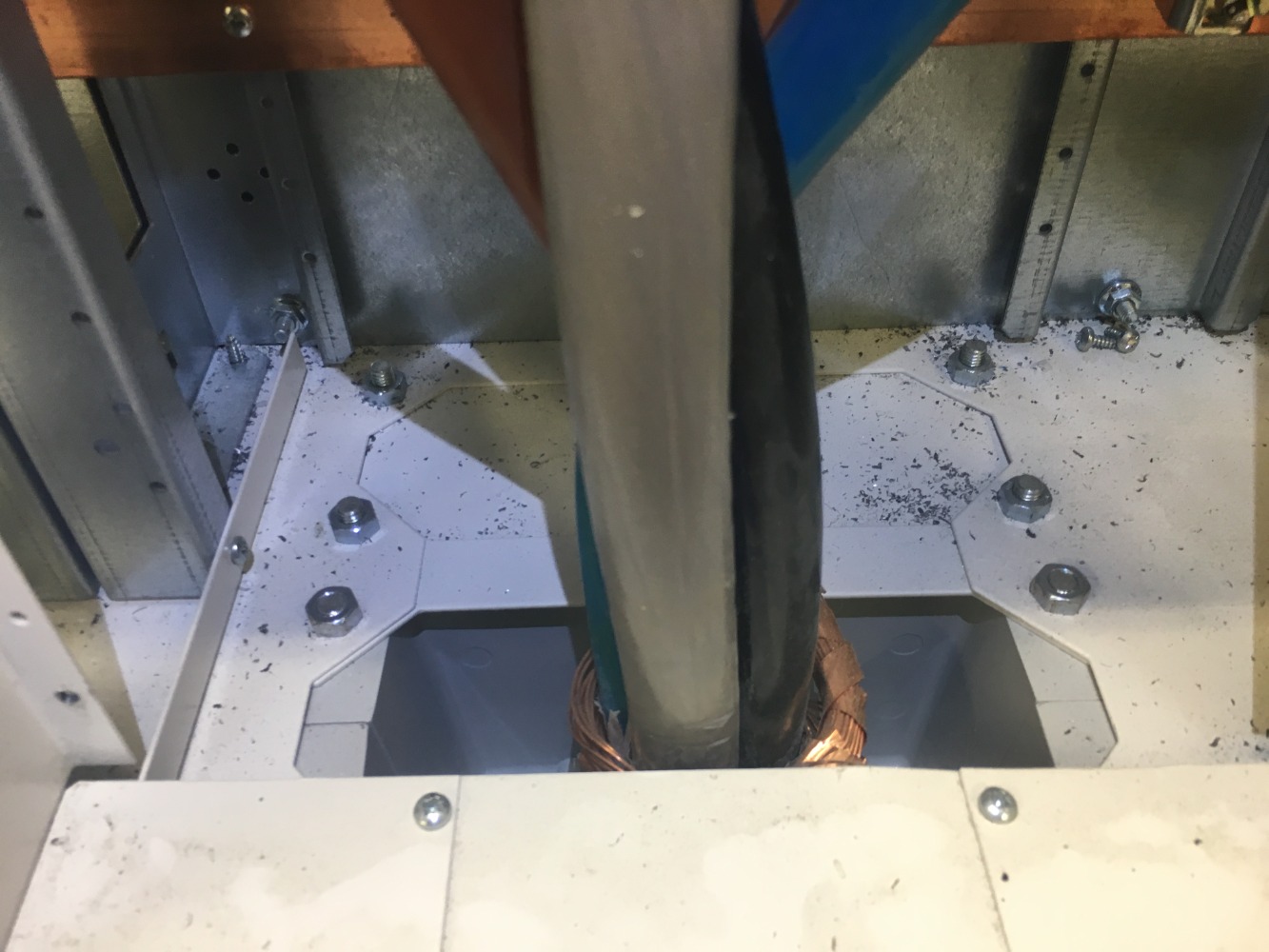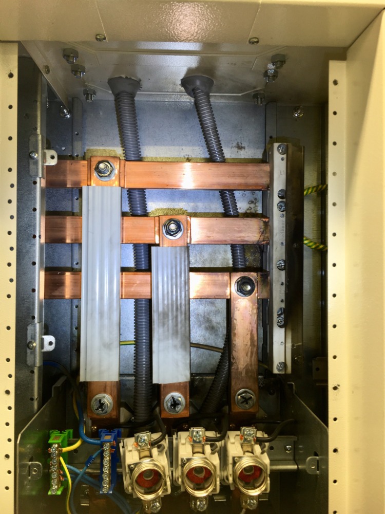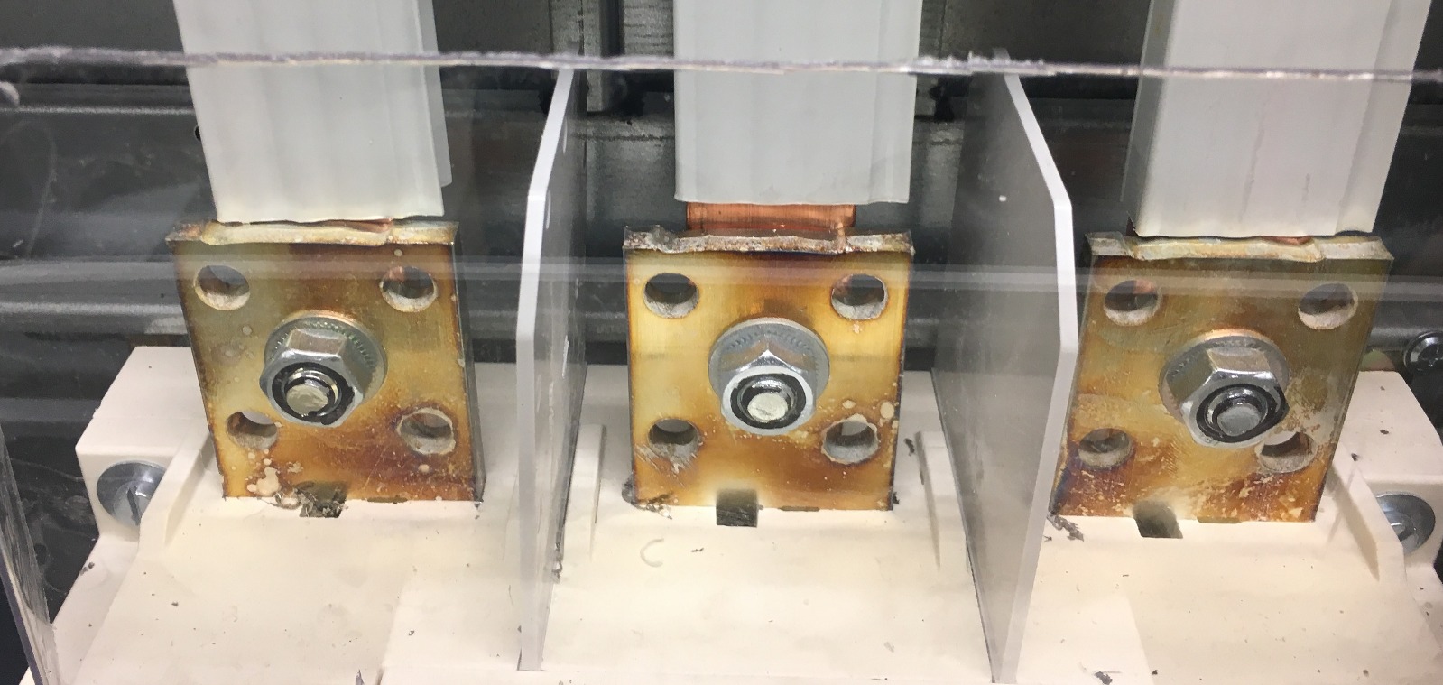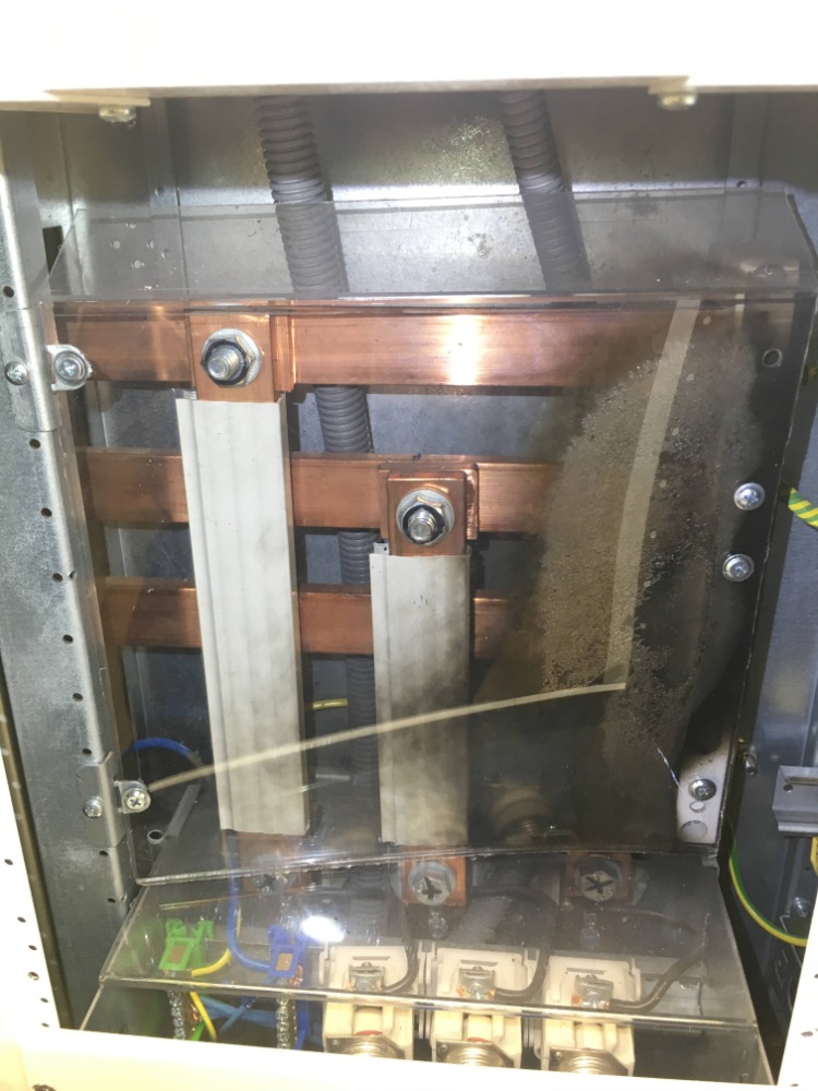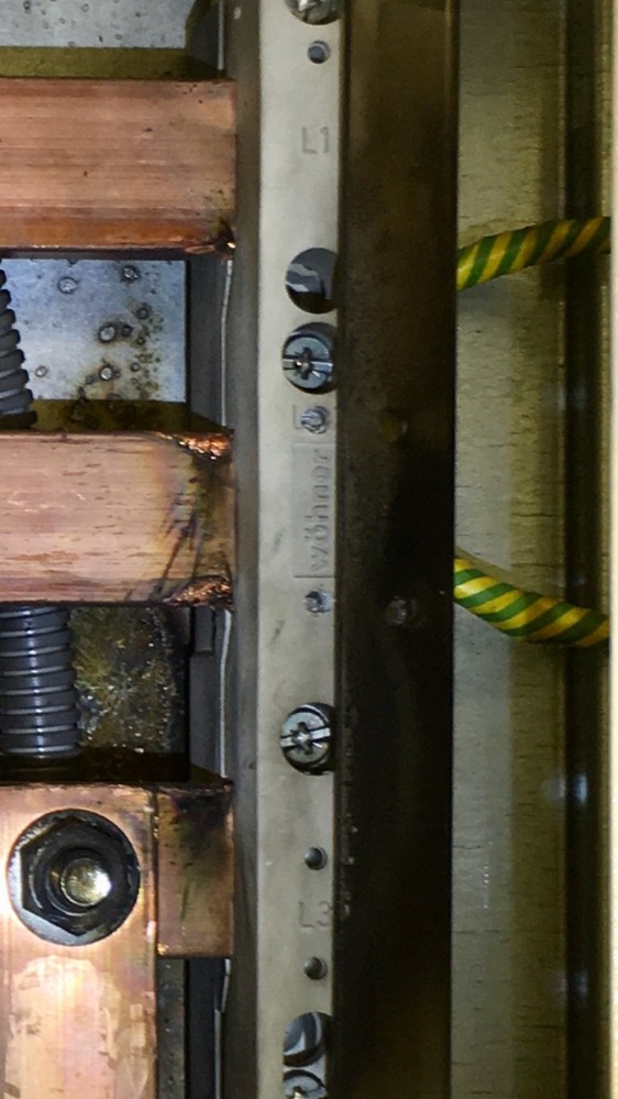 Förutom överslaget mellan skenorna så är även en av tre effektbrytare på inkommande sotad. Muttrar runt om i centralen var märkta och ska därför ha momentdragits, saknas dock protokoll kring efterdragning. Har hört någonstans att aluminium är "extra viktigt" att efterdra, eller om det var övergångar mellan Cu/Al..