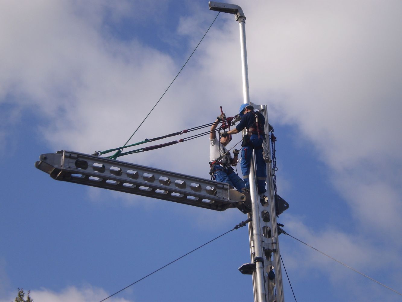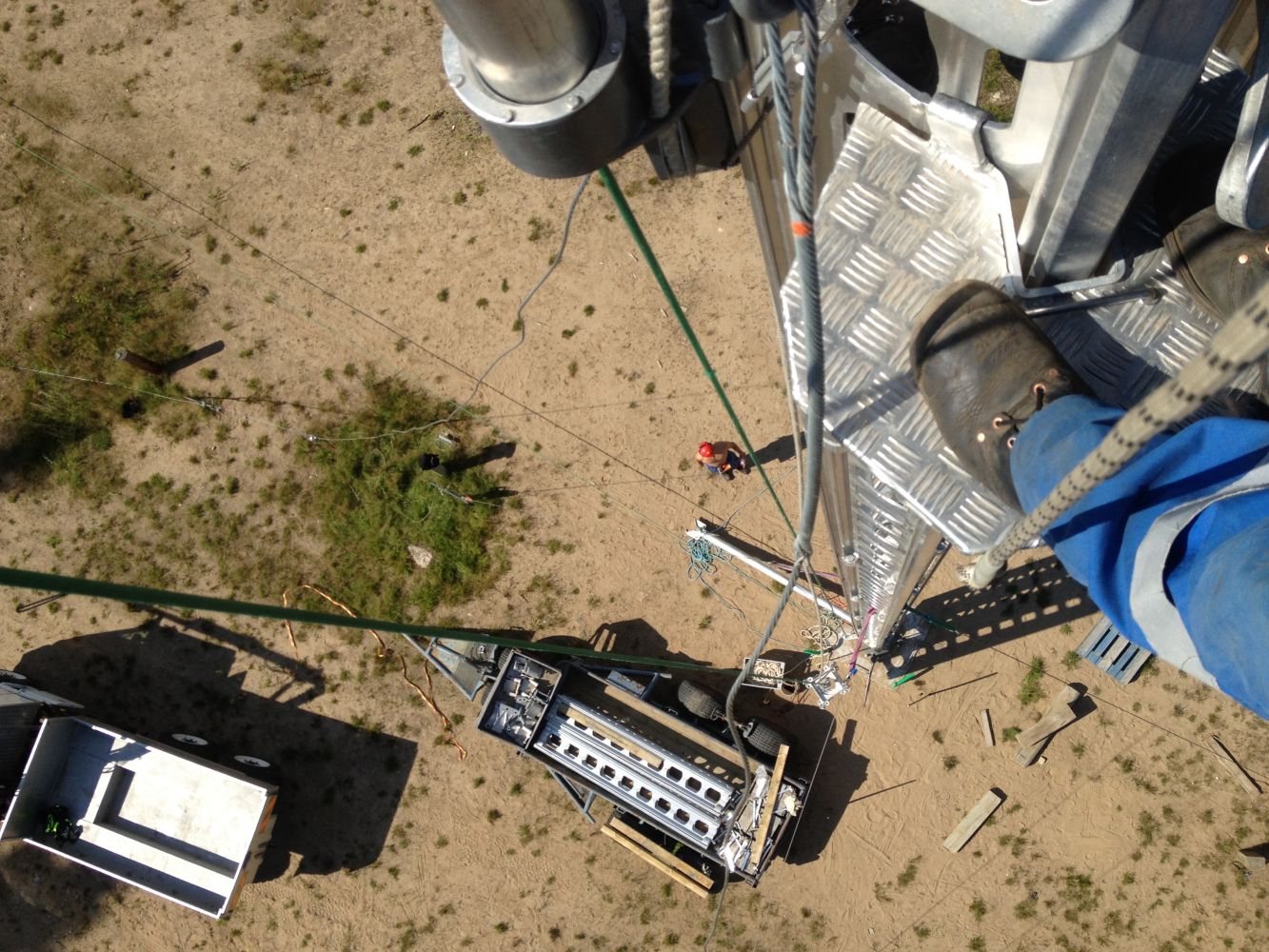 När jag jobbade på elnät hängde linan i bältet på gubbarna tills de kommit upp...