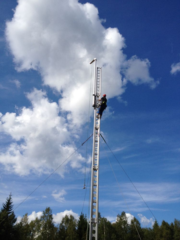 Tror det kallades MegaTower och var tänkt för dom höga stolparna på Mälaröarna. Fick höra när jag var på rep utbildning sist på Åsbro Kursgård att dom hade skippat det projektet för basen blev för bred så den fick inte plats på ön ändå samt att det blev lite ostabilt. Min årskull i civilplikten 06 va med och byggde upp ett test torn med canadstoplen (själv va jag upp i lappmarken i Porjus och plockade ned ett 230 kV ställverk i molekyler för att sen sätta ihop det igen).