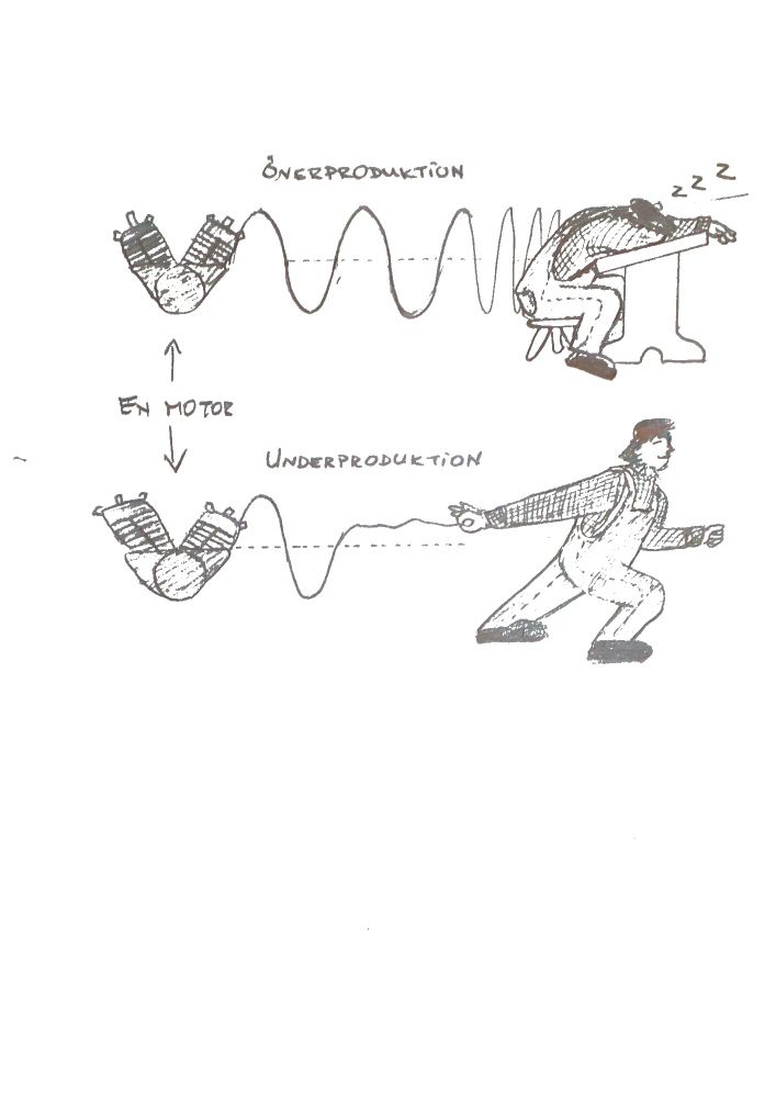 Michell Andersson skrev: När man formulerar sig så, så ser jag en bild framför mig där spänningens sinusvåg trycks ihop som en fjäder ( fler perioder/s, ökad frekvens) mot en gubbe som sover på sin arbetsbänk, vid överproduktion. Vid underproduktion så står samma gubbe och drar i fjädern i mottagarändan vilket ger färre perioder/s.
