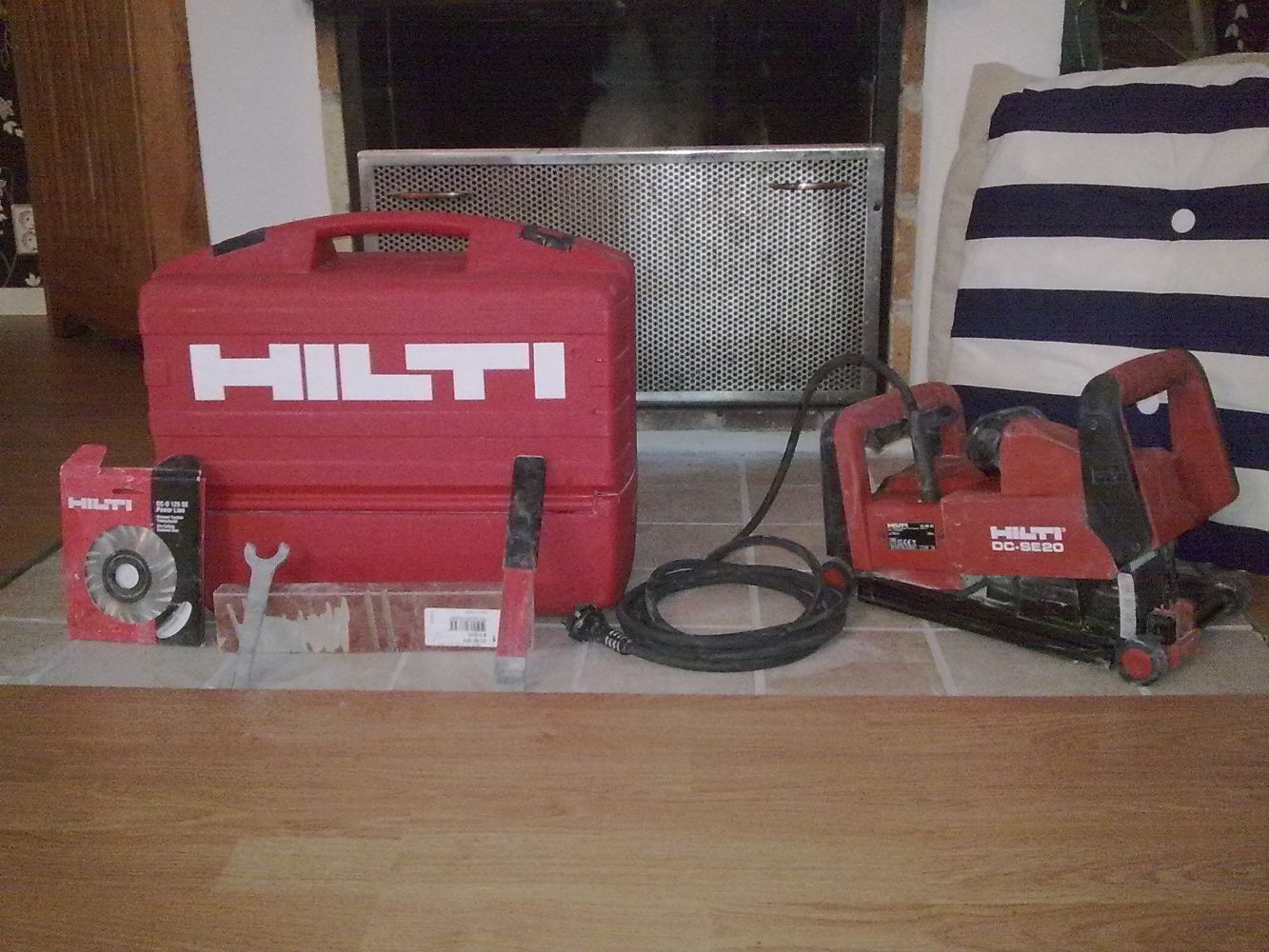 För dom som inte vet vad en DC-SE 20 är så ska jag försöka böka med en bild på maskinen och medföljande tillbehör, bilden är inte den bästa för det var den sista som togs innan mobilen ballade ur. För mer info om maskinen så kolla in Hiltis hemsida. Jo, för den intresserade så kan ju nämnas att Hiltis listpris inkl väskan är drygt 19.000 kr netto på denna, självklart så köptes den ju in billigare då man är kund hos Hilti men jag slumpar ut den för inte mer än 7000 kr...ja, endast sju papp liksom.