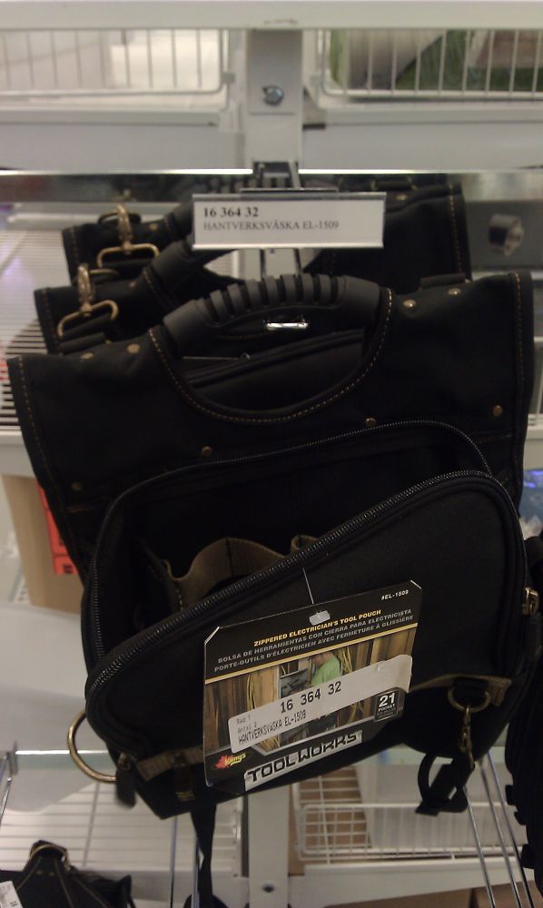 Den sistnämnda väskan är ju visserligen lite tung när man har skruvdragare och allt i, men den funkar skapligt att gå med när man går med axelbandet.