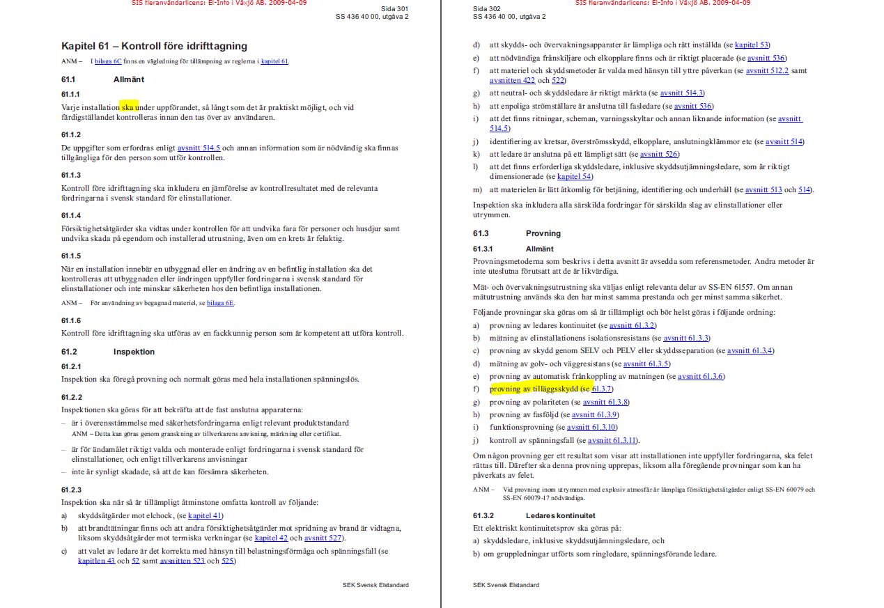 Vad menar du med föreslås ?Jag vet inte riktigt vad som är utgångsläget här egentligen... Det formuleras vad som MÅSTE kontrolleras... Det är ju inte detsamma som vad som föreslås i SS 436 40 00.