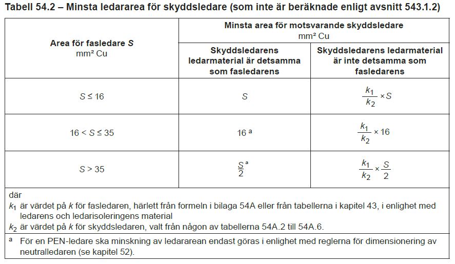 Bo Siltberg skrev: Vad behöver vi se över? Vad jag kan se medger redan 543.1 en mindre area på skyddsledaren, det är bara att sätta igång att tillämpa. En svårighet är dock villkoren, formeln du anger, man måste räkna lite även om en JFB används som felskydd och där ingår att lista ut värdena på k, t och I.