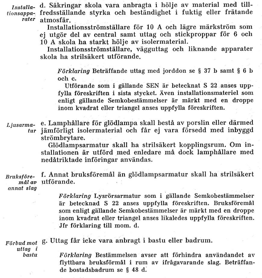 I den gamla föreskriften KFS-Ser.A 1959:9 §49 står generellt att uttag ska vara utförd i strilsäkert utförande.