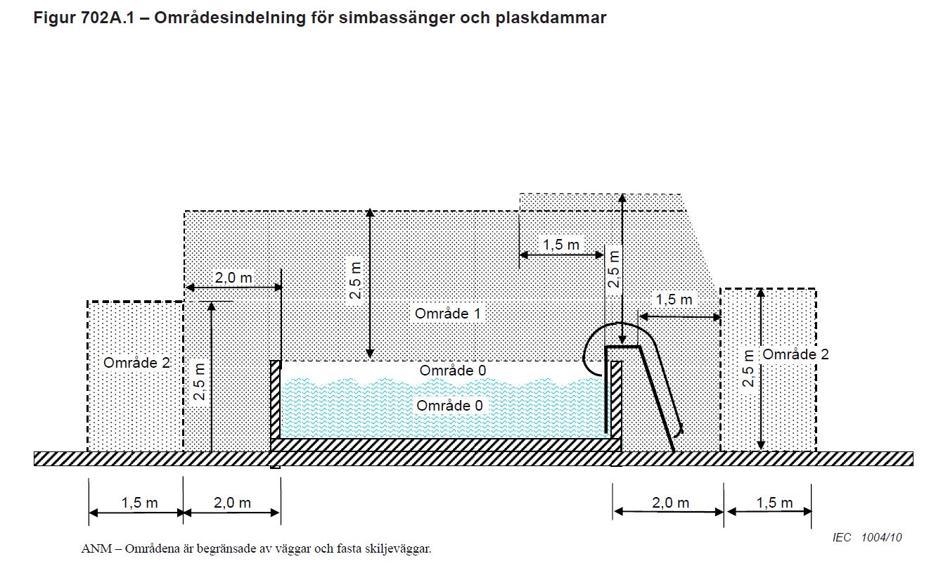 Sen längre ner står att uttag i badrum och bastu är förbjudet. Oklart vad "simhall" räknas som här?