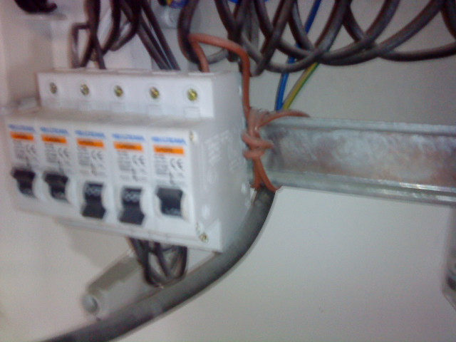 Bild 3. Villa i Södertälje där kunden gjort de mesta av elen själv sen han började smårenovera hemma, Gummikabel till VVB klamrad med antennpickan....