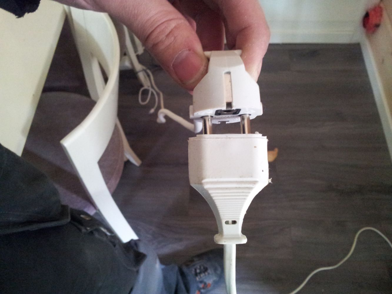 Sidan. Hittade detta när jag kopplade ur förgrenaren och de skarvsladdar som satt i.