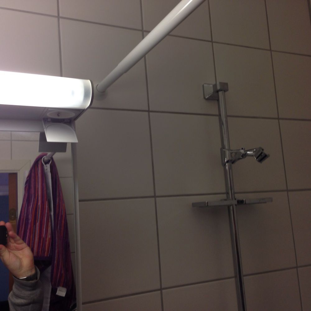 Det hade la varit okey om det varit en avskärmning istället för ett draperi. Tex duschvägg eller svängbar duschvägg/dörr.