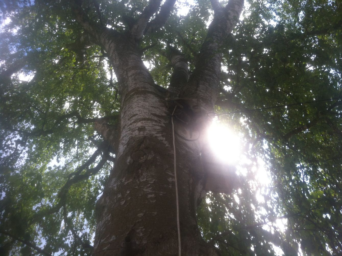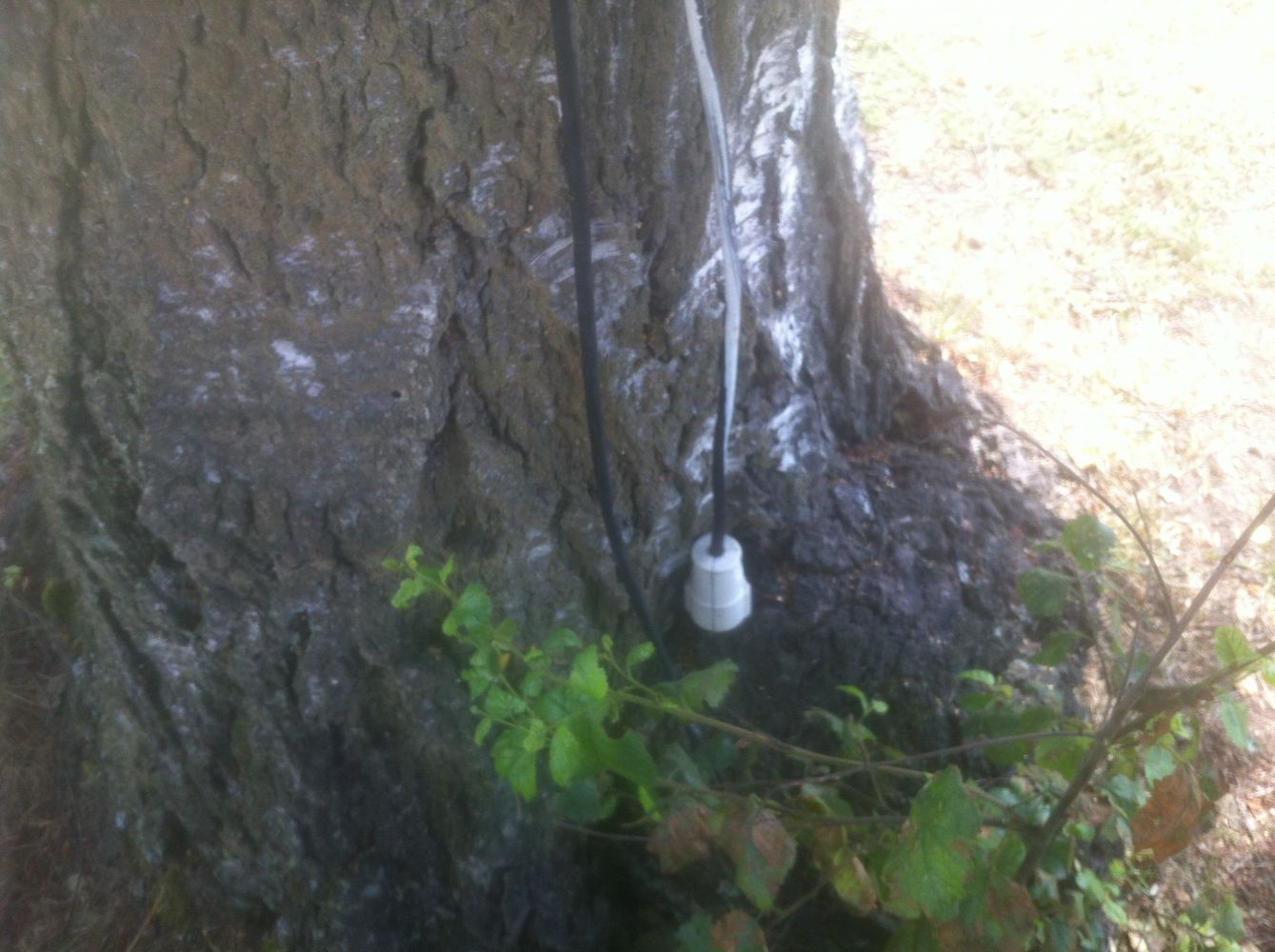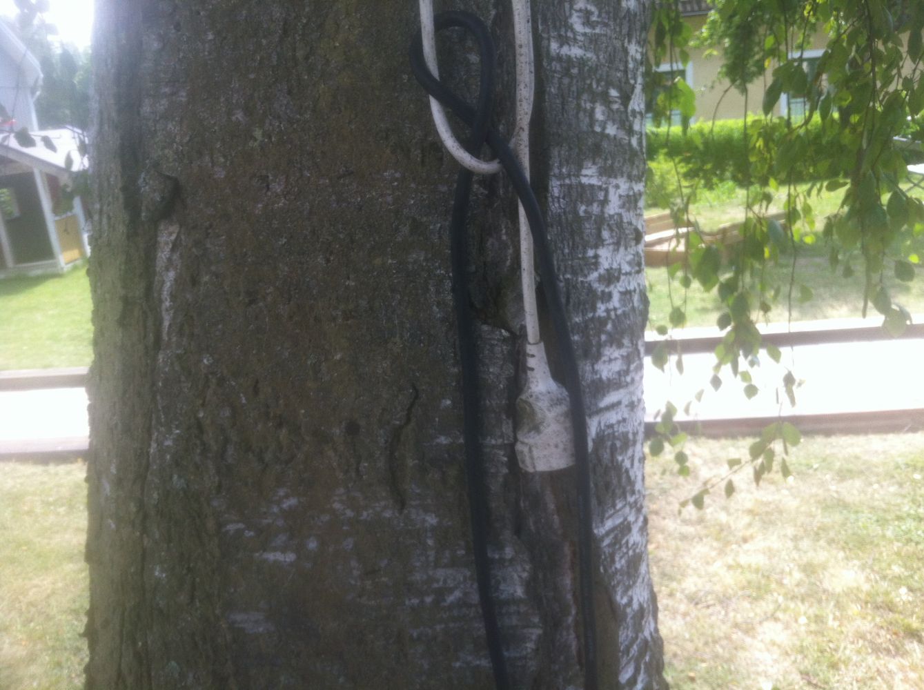 Kabel är förlagd i luften, lite halvspanskt uppspänd över ett par tak, virad runt skorsten för att hamna här: