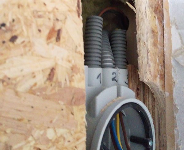 De inhyrda snickarna på bygget tog saken i egna händer och flyttade på en dosa jag hade satt innan de dubblade. Eftersom slangarna inte räckte till (men tydligen trådarna) kapades de av...