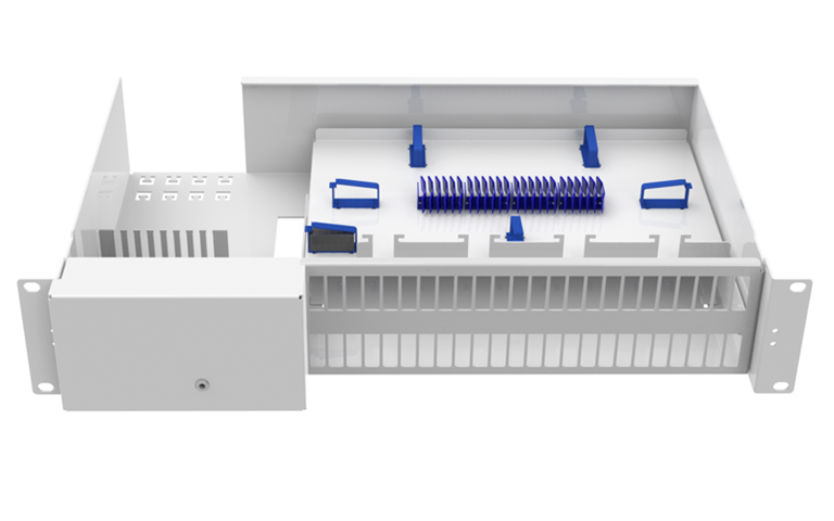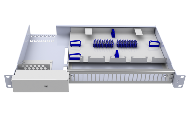 Ni borde kunna använda en ODF för microdukter även om ni bygger med kabel, principen i ODF är nära nog densamma. Du kommer in med kablarna på vänster sida (fäst med buntband), svänger runt med fibern in slingutrymmet där du svetsar som vanligt