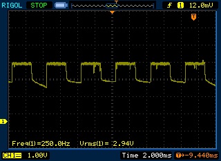 Stefan Ericson skrev: PWM lär inte vara likström. Det står inget om switch frekvens, dock lär den vara rätt hög. Någon med ociloscope kan väl mäta.