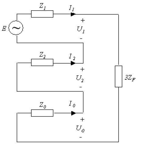 Nedan figur över sekvensnätskoppling för ett enfasfel med felimpedans ZF.