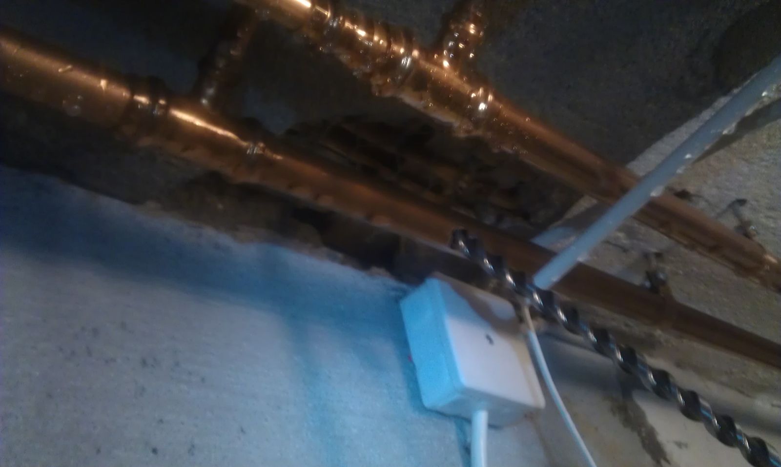 Borrade du hål i kopparrören med en cormantborr?