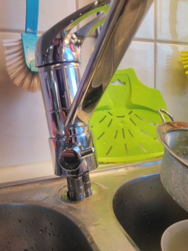 Sambon ringde och sa att blandaren "sprutade vatten hela köket" in på Biltema och köpa en ny, lite litet hål bara :tokig: