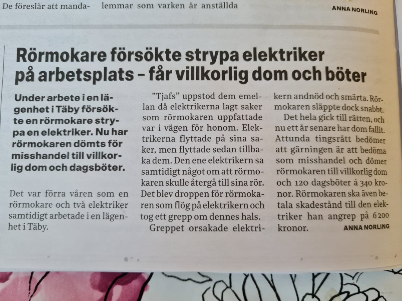 Rörmokare försökte strypa elektriker!