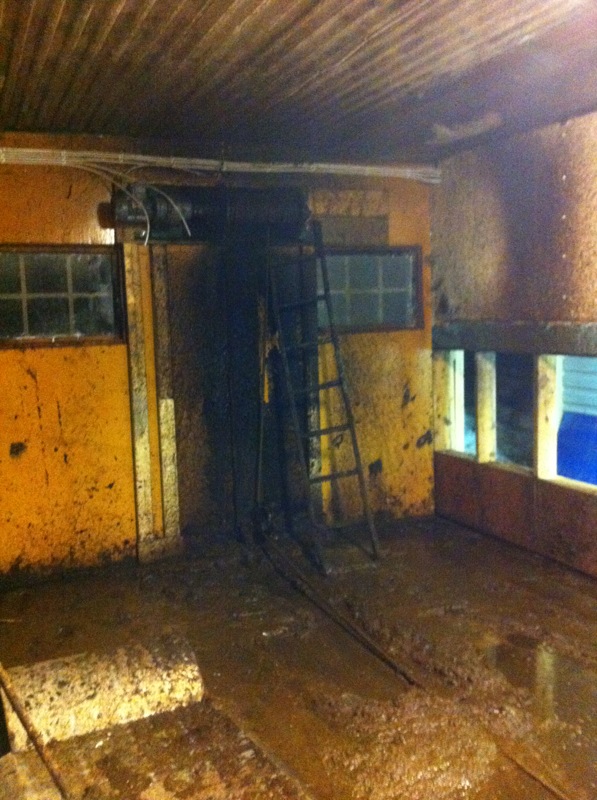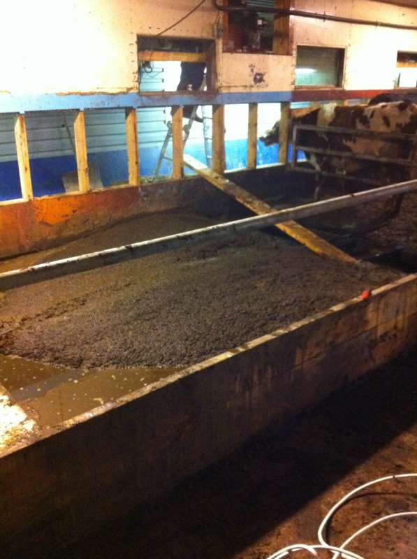 I ladugården finns två gångar där man har skrapor som drar ner skiten i en tvärkulvert. Skraporna dras en rep eller kätting med hjälp av motorerna. Börjar det gå för tungt (strömmätning) så går skrapan tillbaka en bit och gör ett nytt försök några gånger för att sedan stanna. Då måste bonden dit och åtgärda felet. Hydraulmotorn för utgödslingen styr armar i tvärkulverten som trycker ut skiten till gödselbrunnen