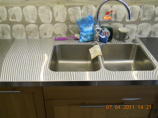 Konstigt.. Jag har aldrig sett sån effekt. Vi har nog dock aldrig satt ovan en stor rostfri bänk. Men man borde väl se samma effekt i den lilla ytan som brukar vara bredvid diskhon?